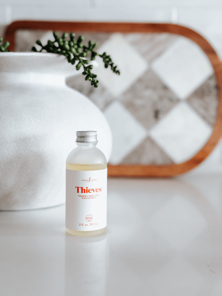 Thieves Hand Soap is plant-based, so it’s perfect for even the smallest mess-makers in our home. The plant-based foam leaves our hands super clean – but not dry like other soaps on the market. In most harsh soaps out there, you’ll find synthetic fragrances, parabens, SLS and SLES, triclosan, and harsh preservatives. Thieves Foaming Hand Soap is free from sulfates, dyes, synthetic fragrances, and harsh chemicals. It contains Thieves essential oil blend, as well as Orange essential oil.