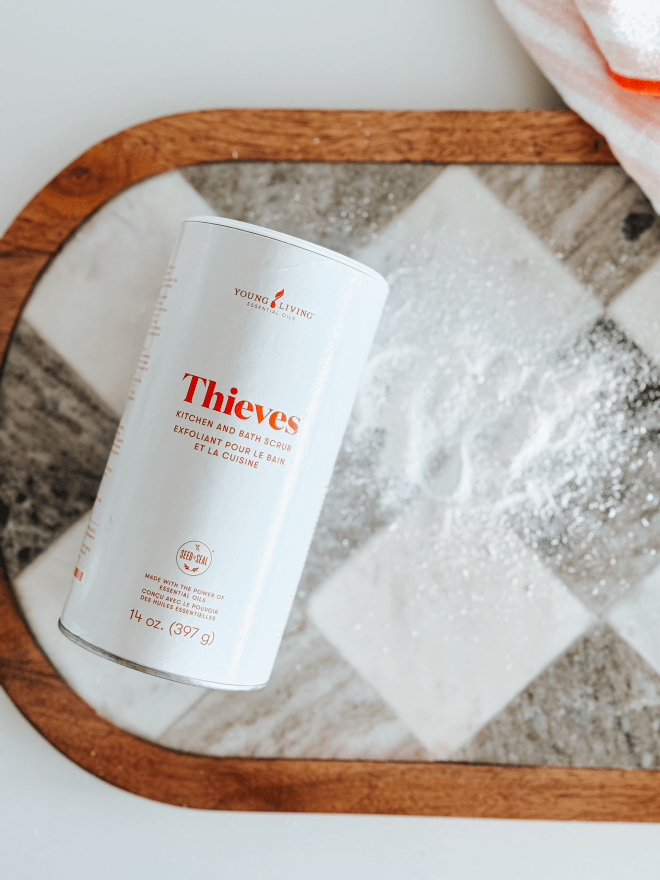 Thieves Kitchen and Bath Scrub is a natural, mineral-based formula that tackles tough messes of built-up grease, dirt, and residue without the synthetic shortcut of chlorine or other harsh chemicals, keeping it gentle for surfaces used by the whole family.
